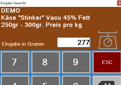 An der Kasse öffnet sich dann die Eingabemaske für die Gewichtserfassung
