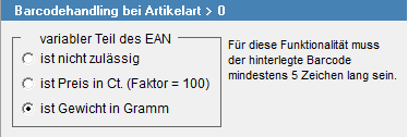 Für die Mengenfindung über Barcode sind ähnlich der variablen Preisfindung zusätzliche Eingaben nötig