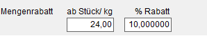 Wichtig: der Mengenrabatt wird nur gewährt wenn dem Kunden die Standardpreisliste zugeordnet ist.