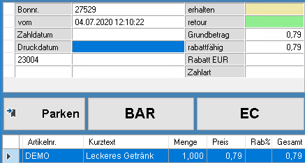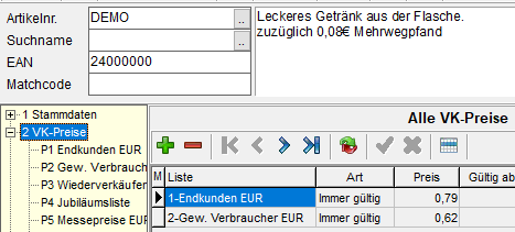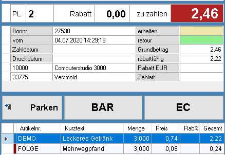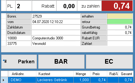 Nach Erhöhung der Menge für "DEMO" und Auswahl Kunde 10000 Computerstudio