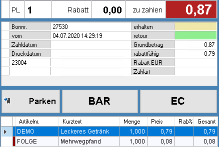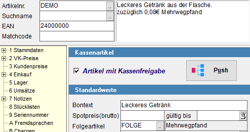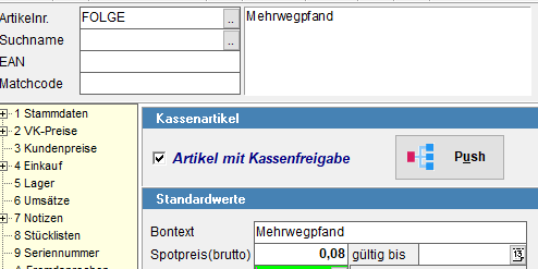 Hinzufügen eines Folgeartikel für Pfand
