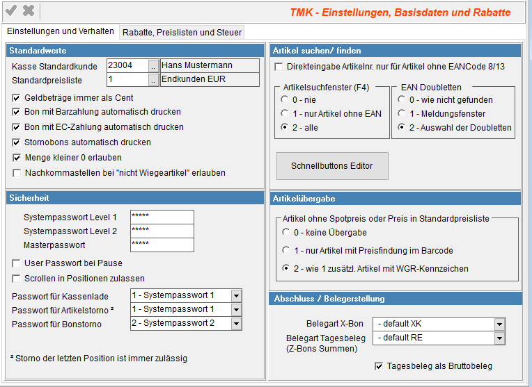 - Kasse Standardkunde Reiter Einstellungen und Verhalten