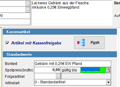 Um einen Artikel an die Kasse zu pushen müssen 2 Bedingungen erfüllt sein: