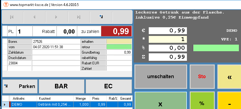 Einfachste Preisfindung über Spotpreis. Der Bon enthält keine rabattfähigen Positionen. |